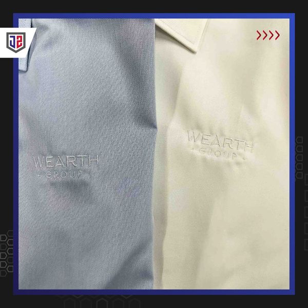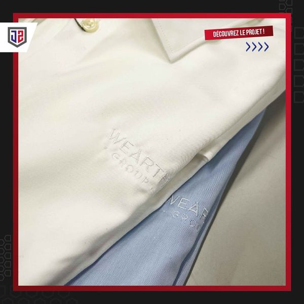 Dernier exemple : une broderie précise et durable sur des chemises premium pour Wearth Group. Un travail de finesse, parfaitement adapté à la qualité des tissus.
