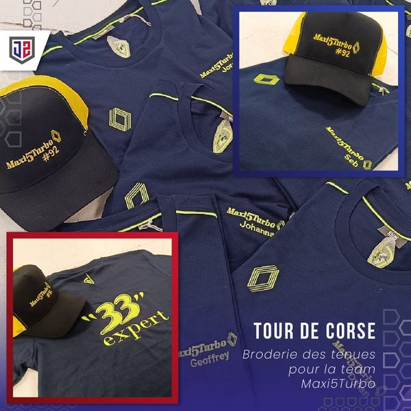#Jequipe2 #PersonnalisationTextile #Broderie #TourDeCorse #Renault5Turbo #EspritDéquipe