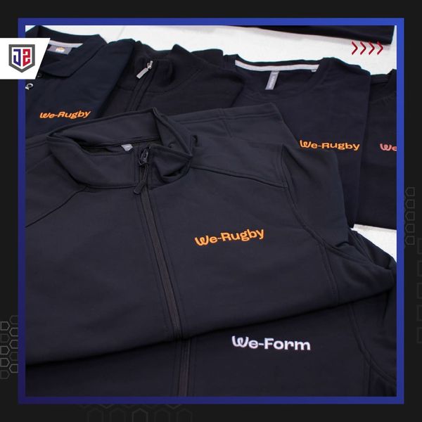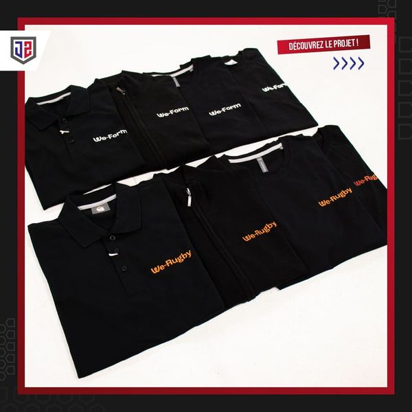 Pour We-Form — centre de formation engagé dans le développement des compétences — et We Rugby, nous avons réalisé une collection complète de vêtements personnalisés qui allie sobriété, lisibilité et présence visuelle.